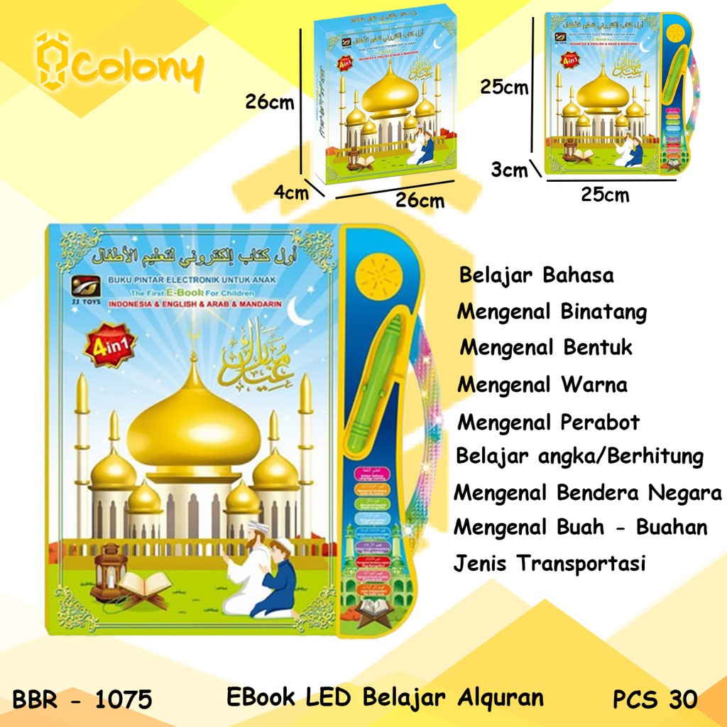 Produk PROMO MAINAN ANAK EBOOK BELAJAR ALQURAN BBR-1075 ini harganya adalah Rp. 99.999,00 dan saat ini sedang Diskon 53%, Produk ini sendiri saat saya tulis Artikel ini sudah dilihat sebanyak kali dan sudah disukai sebanyak 12 kali.