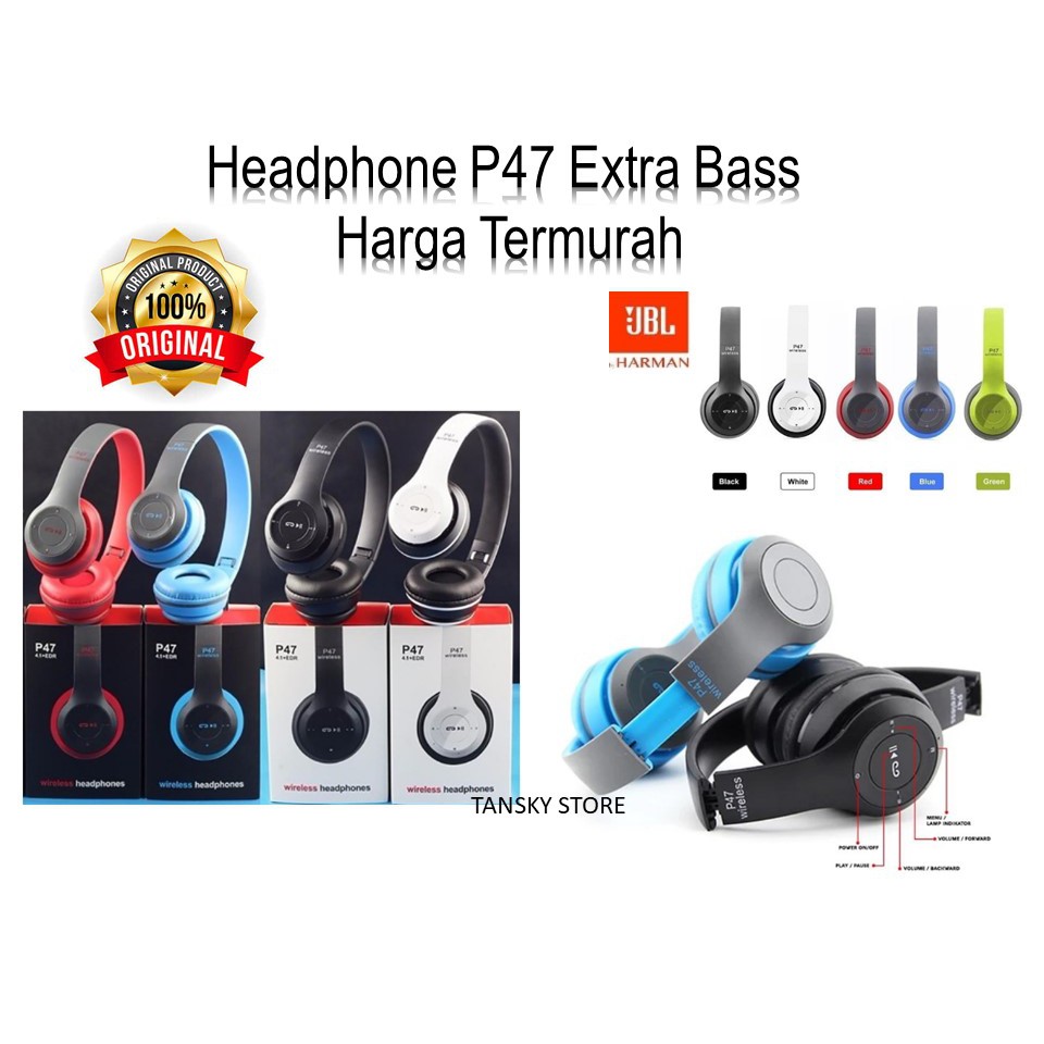 Produk P-47 Headphone P47 Wireless Portable Bluetooth Headset Earphone Extra Bass Bando ini harganya adalah Rp. 36.000,00 dan saat ini sedang Diskon , Produk ini sendiri saat saya tulis Artikel ini sudah dilihat sebanyak kali dan sudah disukai sebanyak 294 kali.